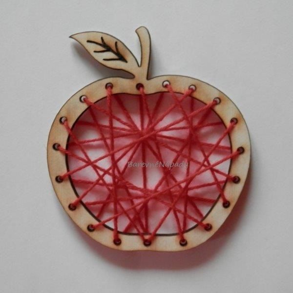 - Díky předpřipraveným otvorům jde o rychlé a snadno opakovatelné tvoření, se kterým si pod dohledem dospělých poradí i dětské ruce. Ti nejmenší, mohou jablíčko oplétat kolem dokola např. vlnou; větší děti zvládnou šňůrky