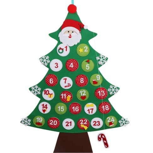 - na stromečku jsou našité kapsičky s čísly 1-24 - stromeček je navržen jako adventní kalendář, buď můžete dát do každé kapsičky bonbónek pro dítko, nebo pomocí filcového cukrátka na šňůrce označovat dny až do Vánoc