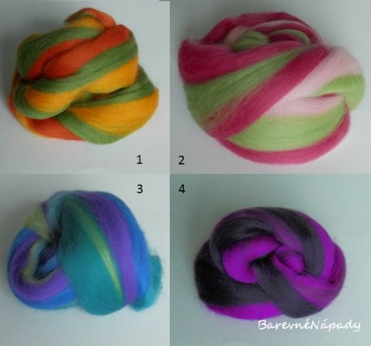 - Melír vznikl smícháním různých barev, které oceníte při mokrém plstění, kdy se barvy propojí a také při předení, kdy vznikne krásně pestře a nekontrolovaně barevné vlákno.