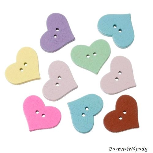 - barevný mix dřevěných knoflíků ve tvaru srdce