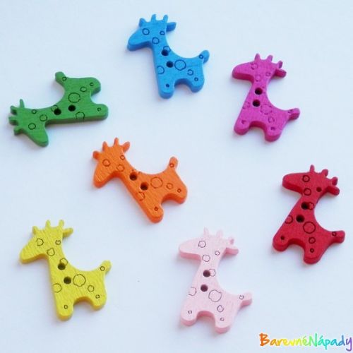 barevný mix dřevěných knoflíků ve tvaru žirafy